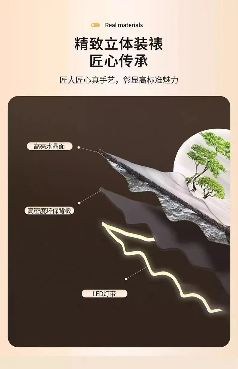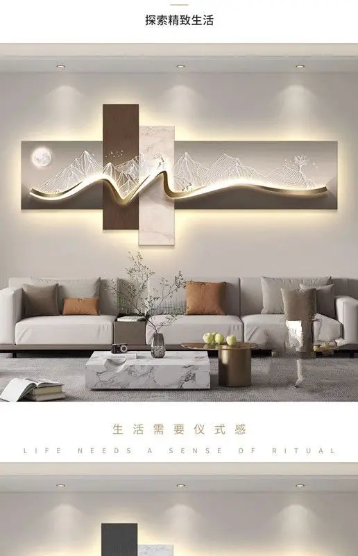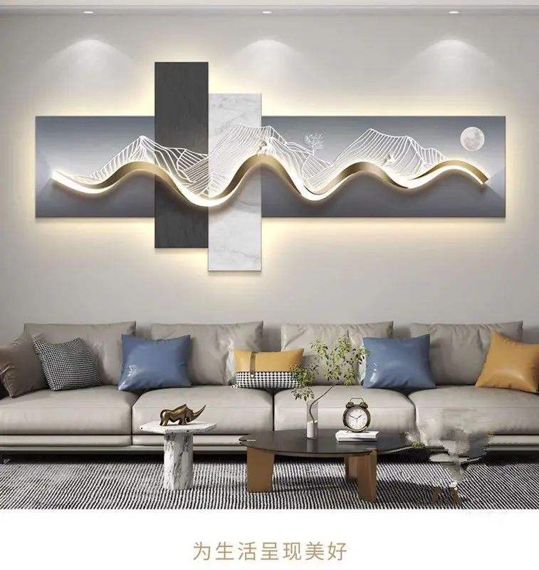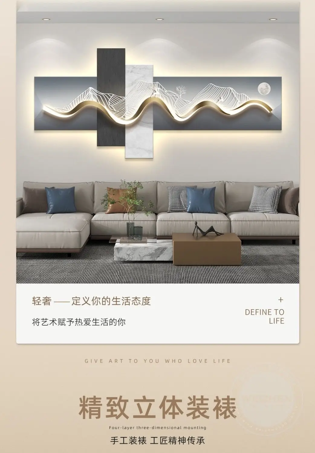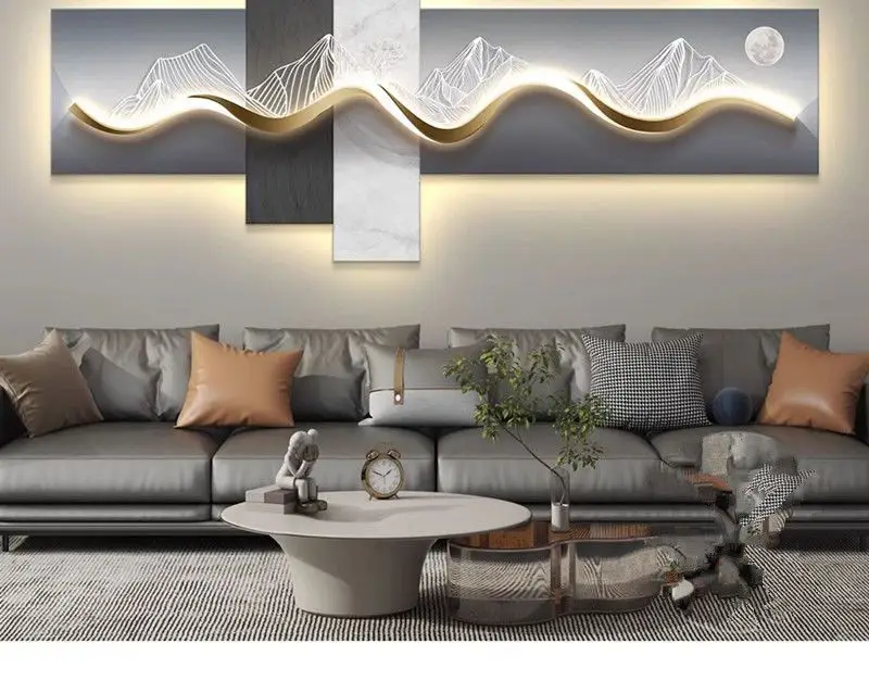 Abstract mountain and sea sofa background wall painting light with light ambience luminous hanging picture high-grade LED lights