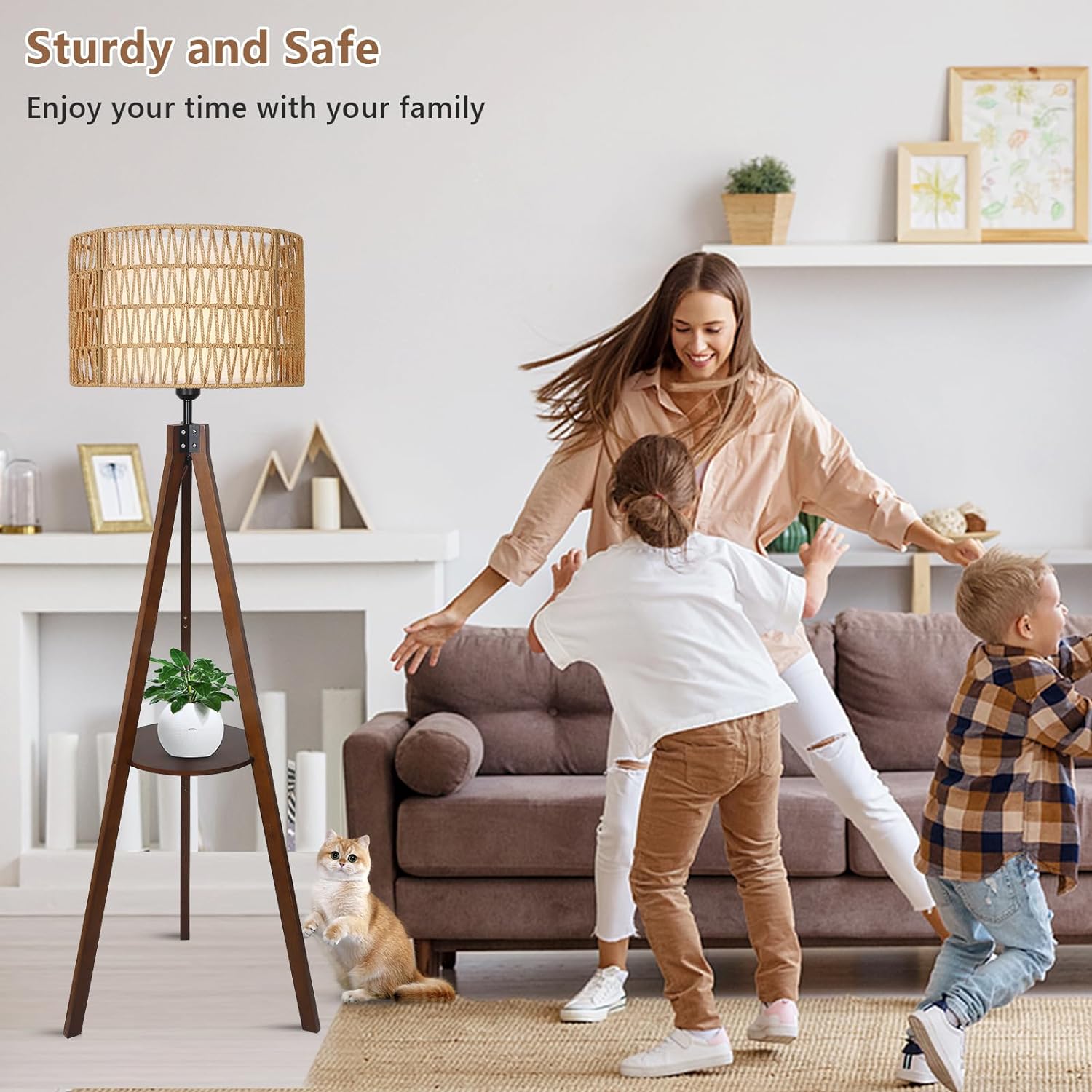 ?【Floor Lamp With Shelves】The shelf of this tripod lamps for living room is made of high-quality Nature Rubber wood and can be used to store and display objects. You can put plants, photo frames, books or any small things you want on it. This mid century floor lamp is both practical and fashionable, and is the highlight of your home decoration. Perfect for living room, bedroom, rec rooms, study, office and corner sofa.