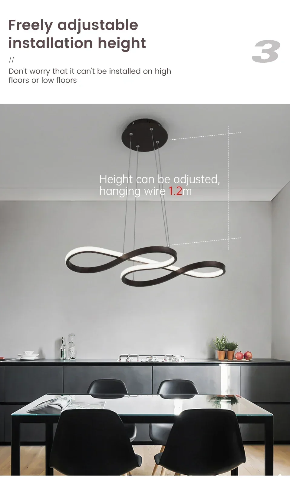 2: "Remote control" option, support 85V-265V voltage, With the convenient remote control,you can easily control both the brightness and the colour temperature, from warm white (3500K)to neutral white (4500K)to daylight white(6500K). Thanks to the innovative memory function, the last brightness setting of the stylish pendant lights is retained after switching off.