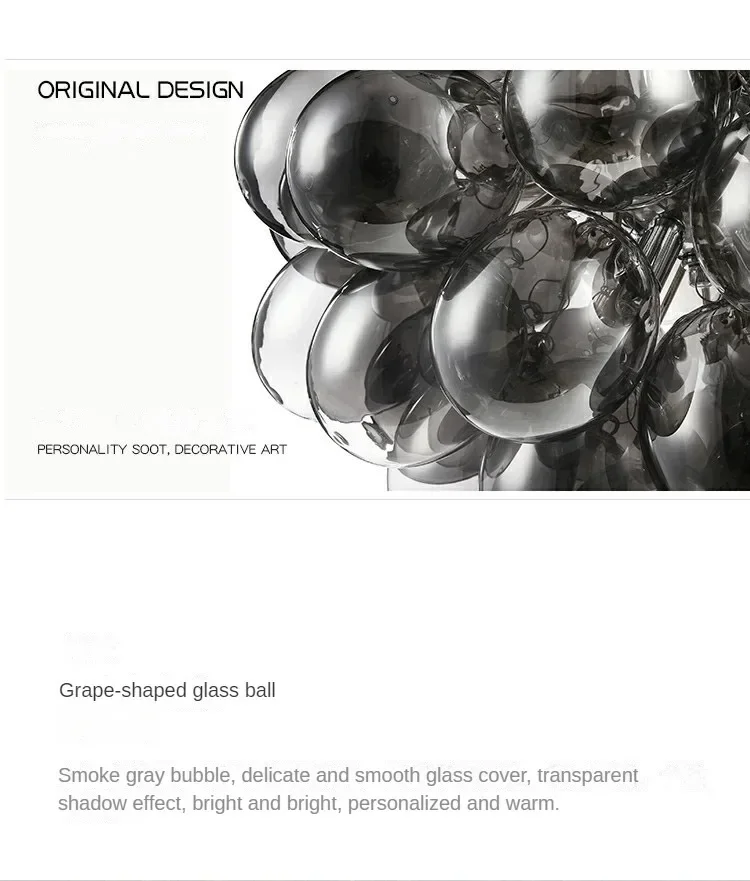 Nordic Balloon Bubble Lighting Boy Children's Bedroom Chandelier Living Room Model Room Restaurant Creative Ash Glass Lamp