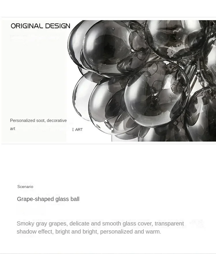 ▲Natural grape shaped glass ball, smoky gray. Advanced style, showing the beauty of modern craftsmanship.