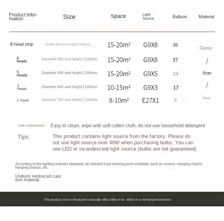 ▲3 heads | Space: 5-10 square meters | Light source: G9 bulb x3